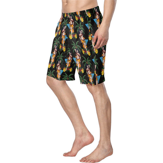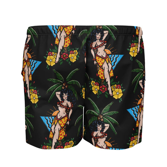 Men's Swim Trunk (Model L21) - Aloha Pin-Up Print