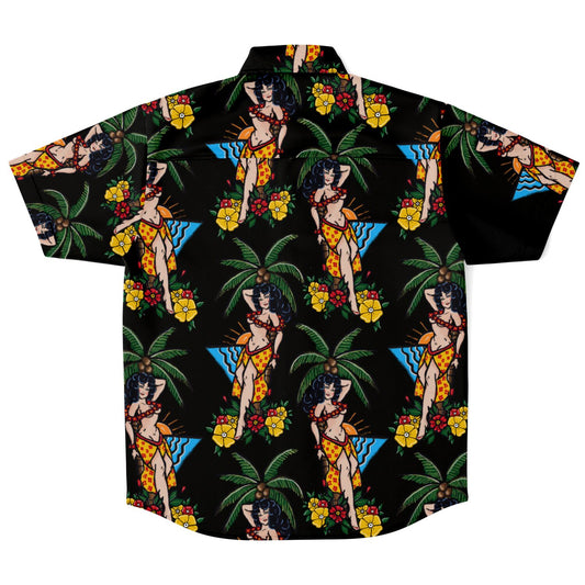 Short Sleeve Button Down Shirt - Aloha Pin-up Print