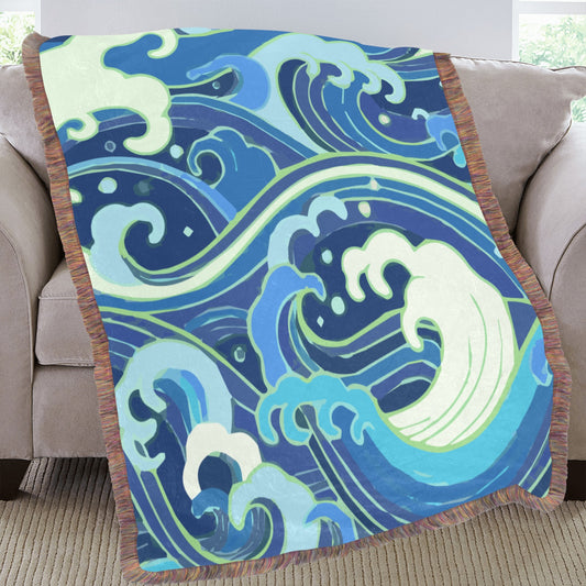 Ultra-Soft Mixed Green Fringe Blanket 60"x80" - Japanese Stylized Wave