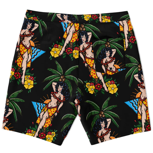 Plus-size Swim Trunks - Aloha Pin-up Print